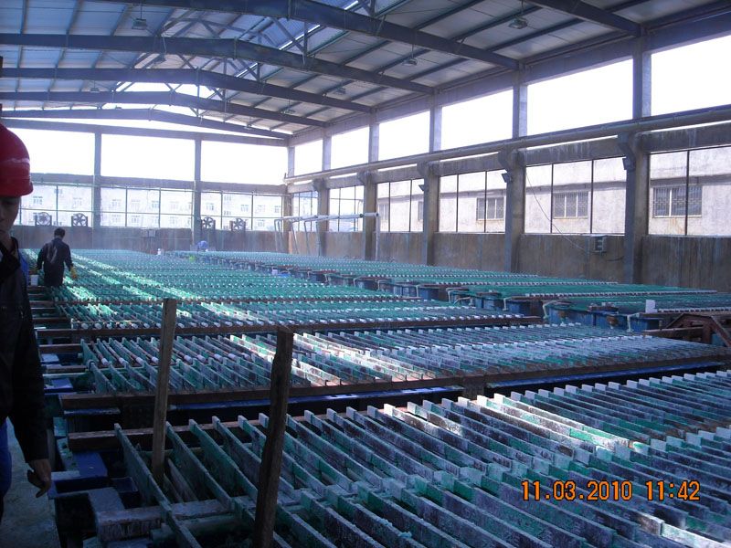 在萃取設備上,多數使用混合澄清式萃取箱(包括淺池和深池式),個別項目用過離心萃取器,如金川3萬噸加壓浸出項目;在萃取箱材質上,可選擇PVC板、FRP、鋼襯FRP、砼襯FRP、不銹鋼等,各材質萃取箱中國恩菲均涉及,且投入使用;在萃取箱規格上,恩菲所設計的,小至混合室尺寸150X150mm,大至直徑2000m,在鎳鈷精煉項目均已投產使用。